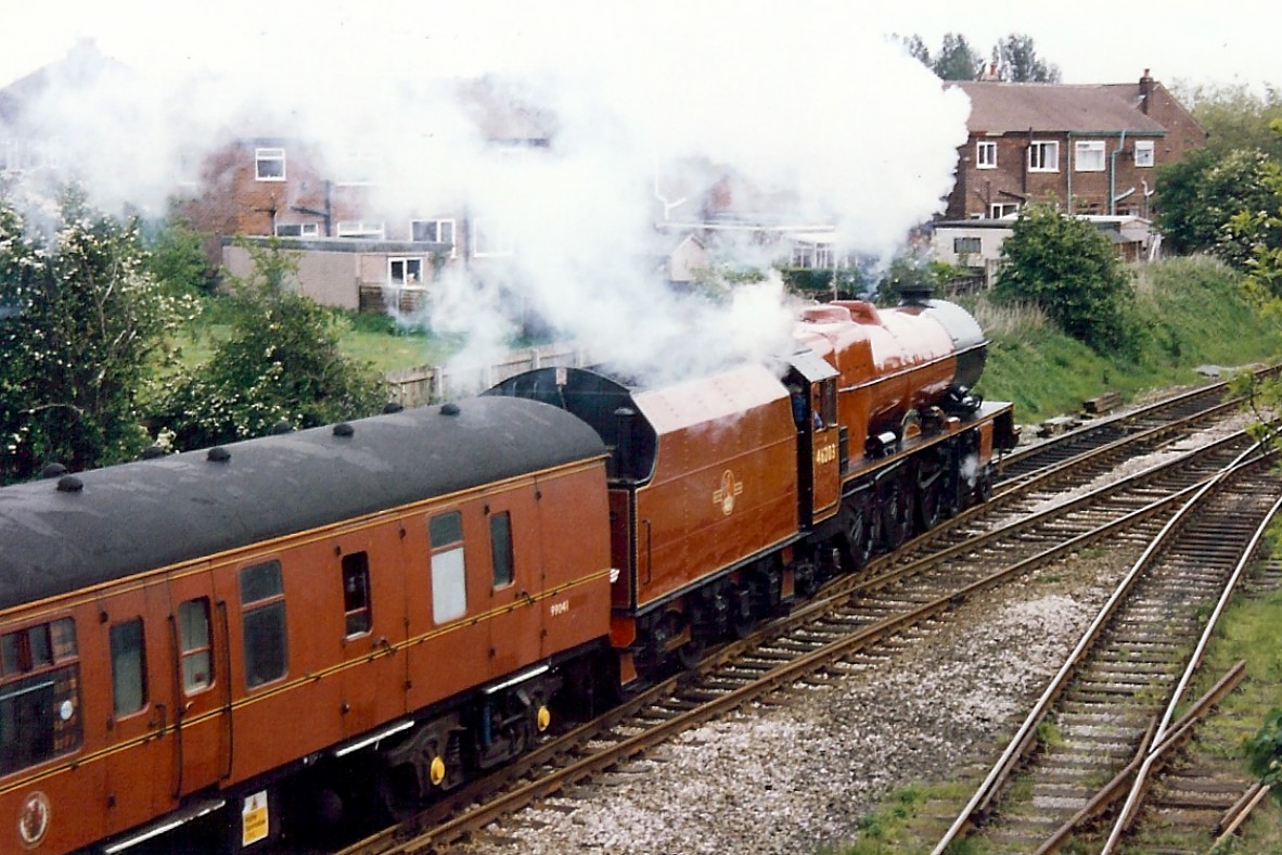 46203 is seen at Lostock Hall Junction, Preston where she takes over a tour from modern traction.