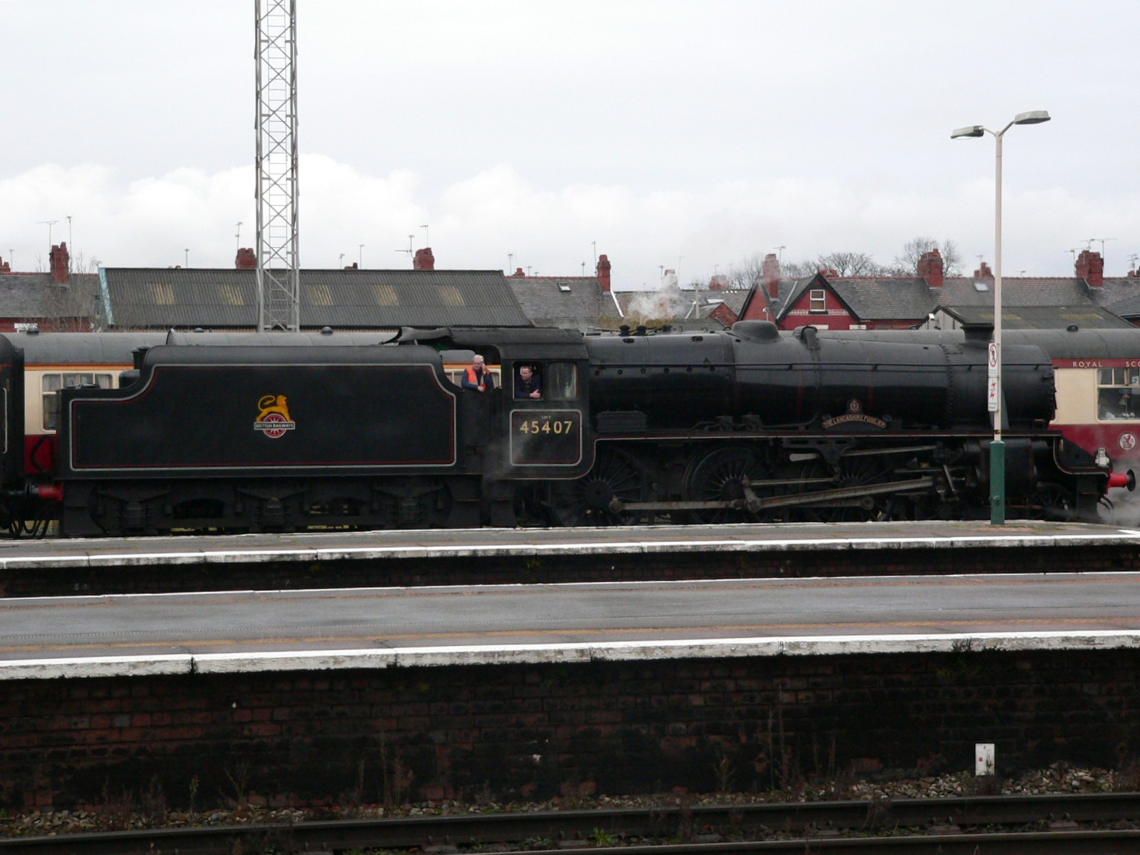 45407 has come off the train and is waiting for her light engine path back to the East Lancashire Railway.
