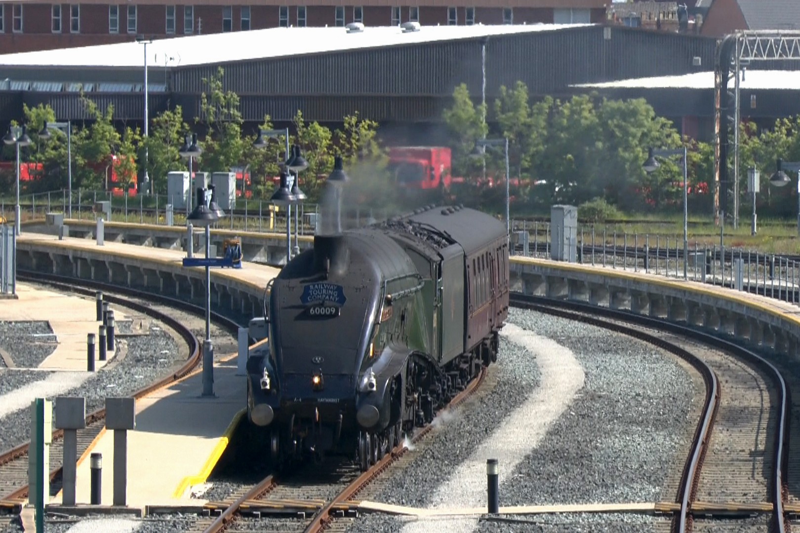 The train is seen shortly after leaving Crewe near Worleston on the outward leg, from Chester North Junction during the stop over