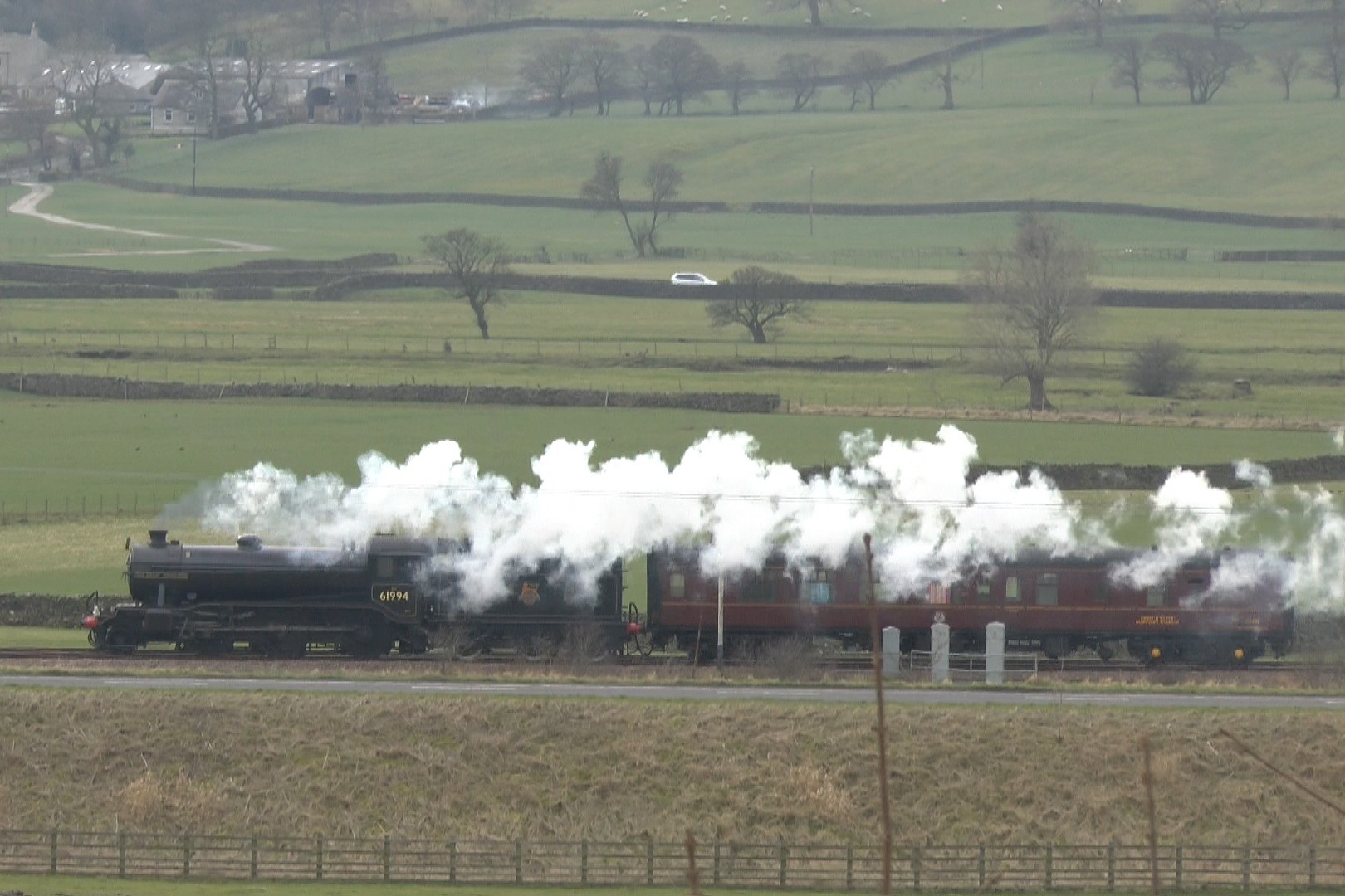 The train is seen at Acton Bridge and approaching Settle Junction.