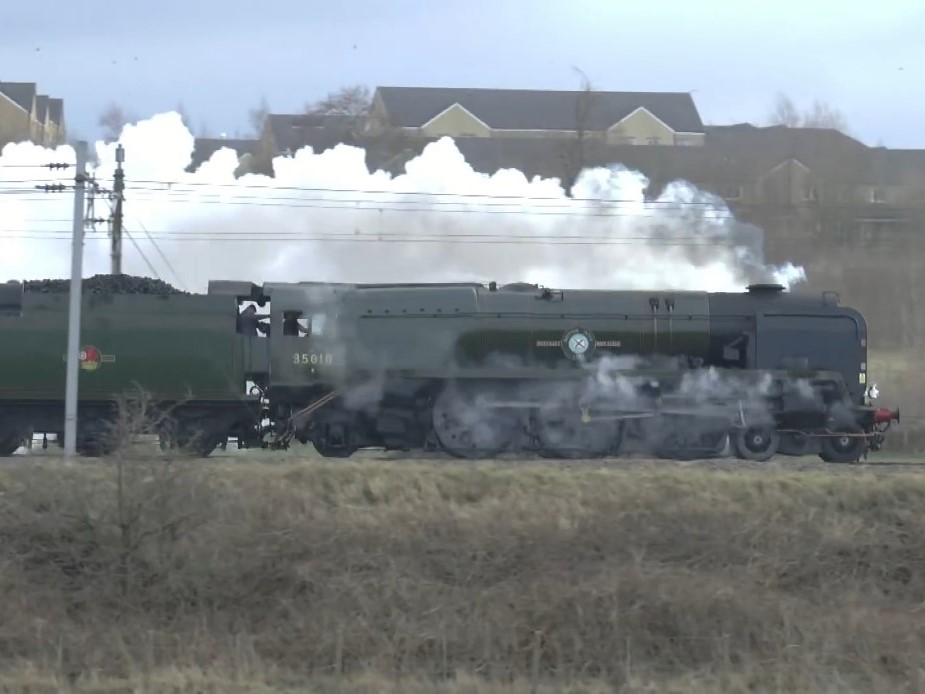35018 is seen at Oubeck Goods Loops and Bee Lane on the outward leg.
