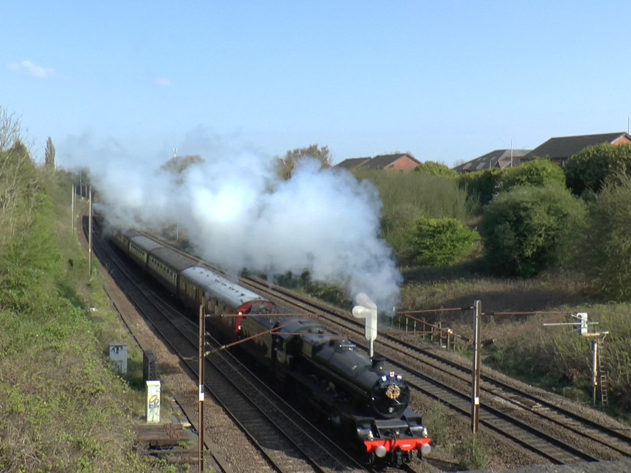 Leander is seen heading away from Preston at Bee Lane and at Sidebeet Lane just after Daisyfield Junction.