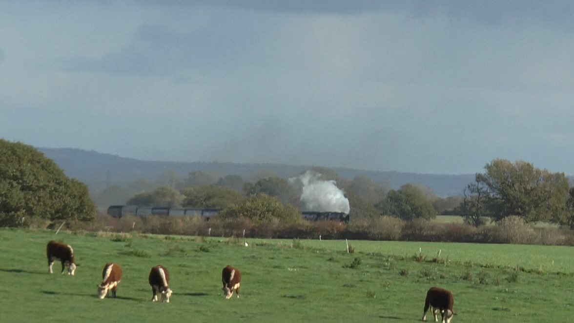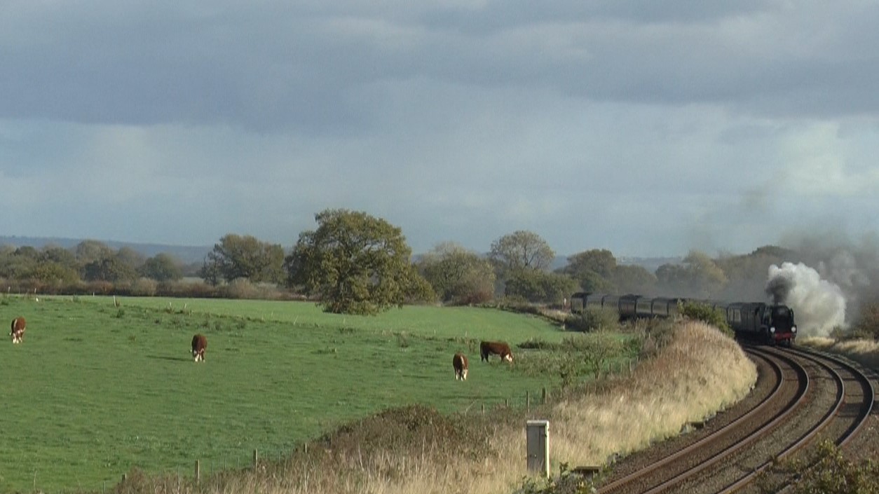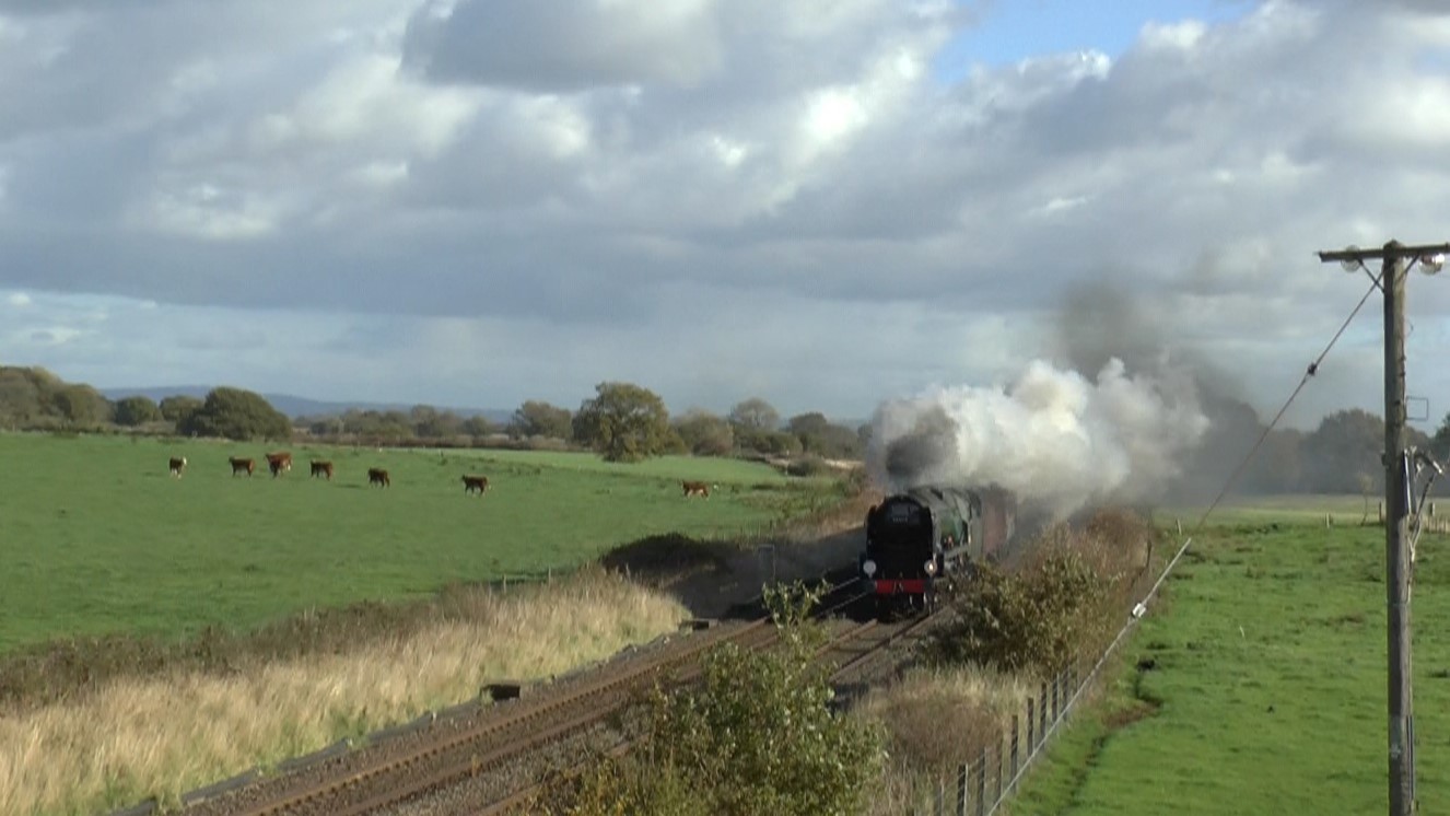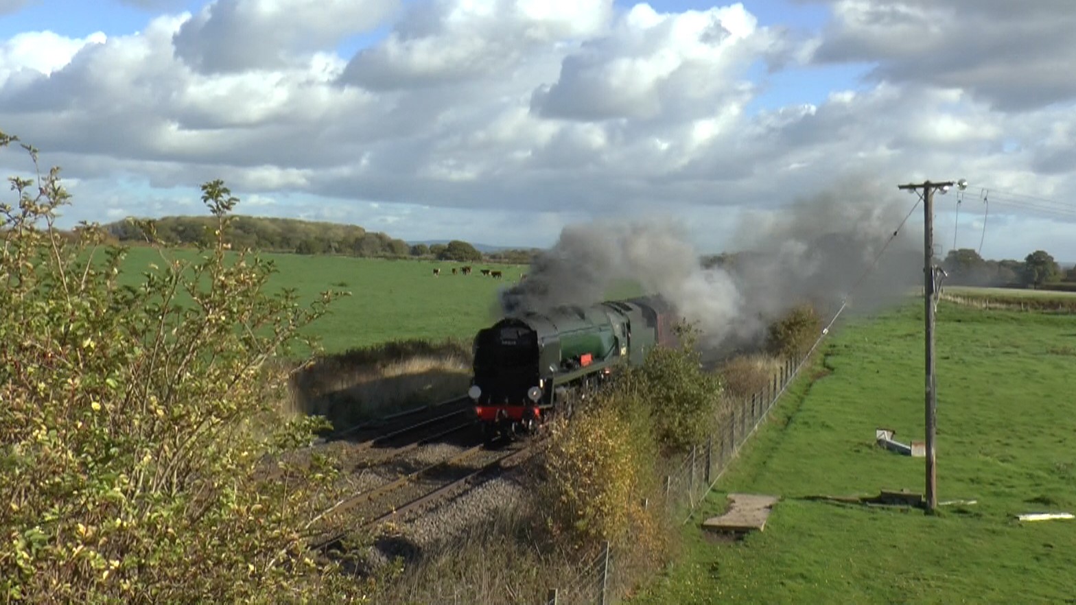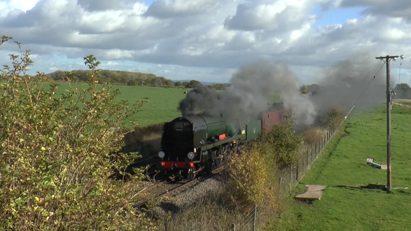34028 on just her second mainline tour is seen hurrying past Wardle not far from Chester on the outward leg with 47812 in support.